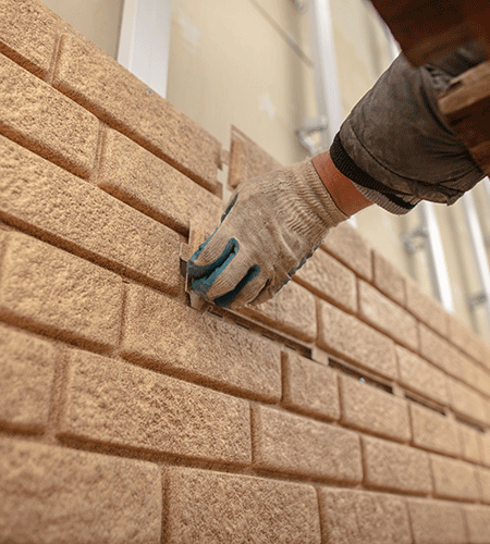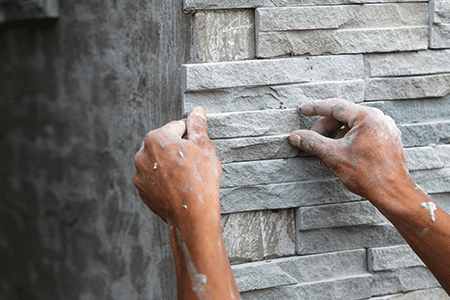 タイル・レンガ・ブロック工事では、建物や壁面にタイルやレンガ、ブロックを設置します。接着剤やモルタルを使用し作業します。表面の均一性などに注意しながら工事します。