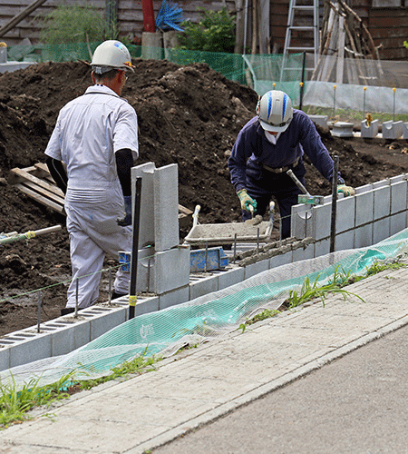 必要な箇所へブロックをモルタルで接着させて積み上げる施工のことです。